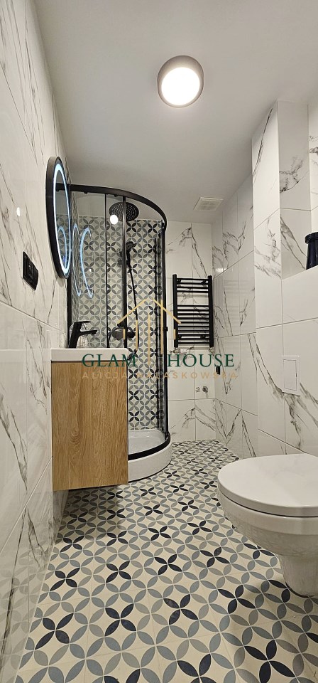 | Wyposażenie łazienki | WC, umywalka, lustro, kabina prysznicowa |